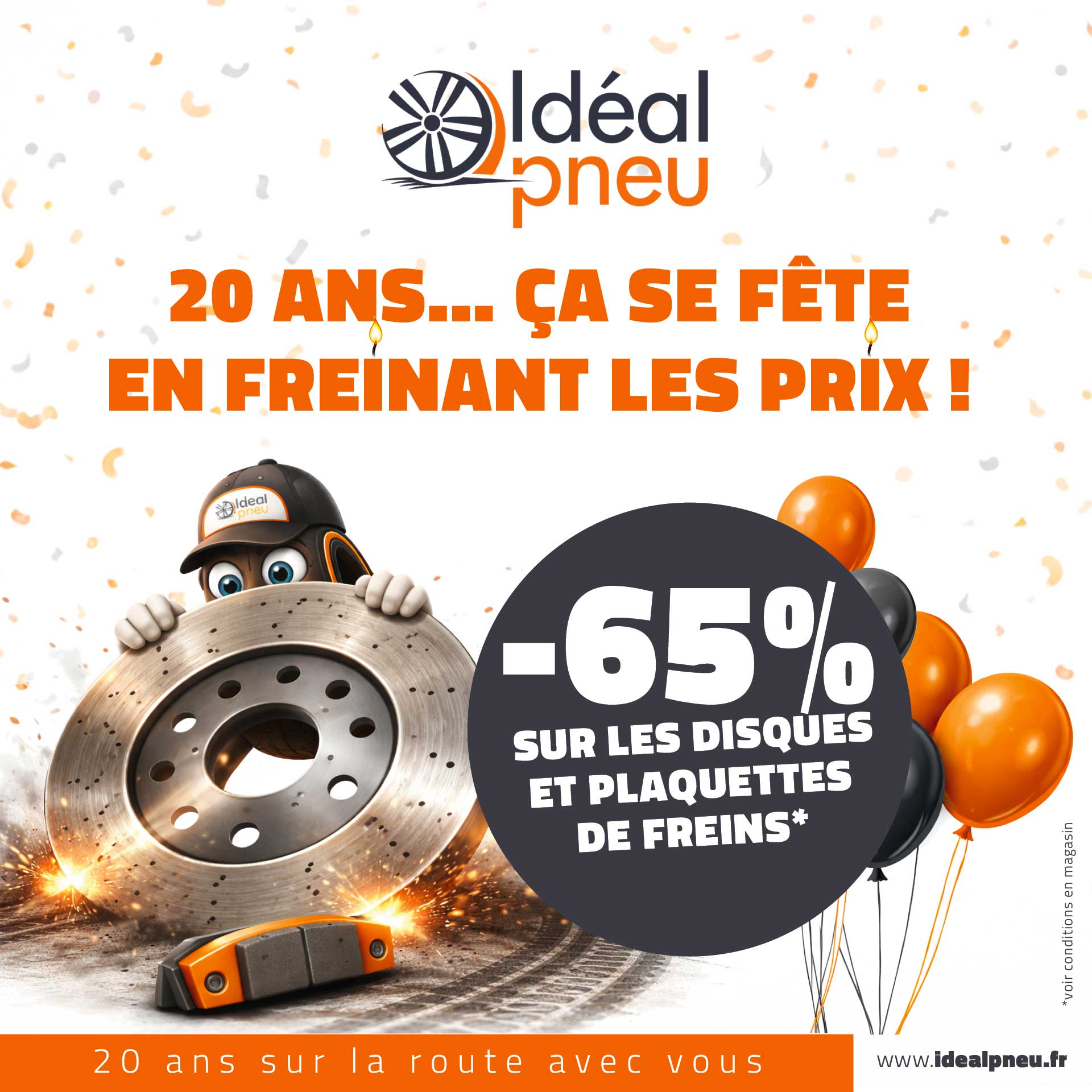 20 ans d’Ideal pneu : -65% DISQUES ET PLAQUETTES DE FREINS SBS